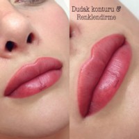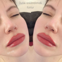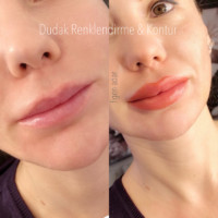 > Dudak dolgusu yaptırıp,yine de memnun olmayanlar için harika bir tamamlayıcıdır.Dolgudan sonra oluşan kötü çıkıntıyı (ördek dudak) kapatır. Bu nedenle harika bir kombindir ve mutlaka her dudak dolgusundan önce maksimum doğallık ve bütünlük için,önce kontur ve renklendirme ,sonra dudak dolgusu yaptırılılmalıdır.